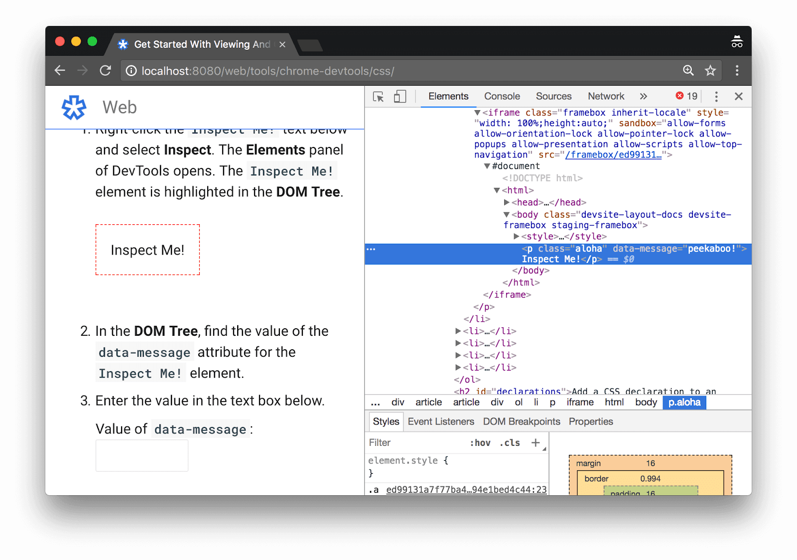 The goal is simply to visually compare and contrast your content visible in your browser and look for any discrepancies in what is being displayed in the tools.