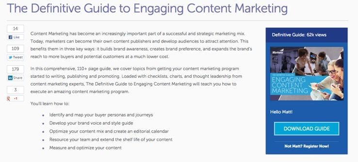 You see companies like Marketo doing this, creating guides around topics other than marketing automation but that are top of mind for their consumers, like international expansion and event marketing. Even though Marketo has some features here, they know that people interested in these topics may someday become loyal Marketo customers.