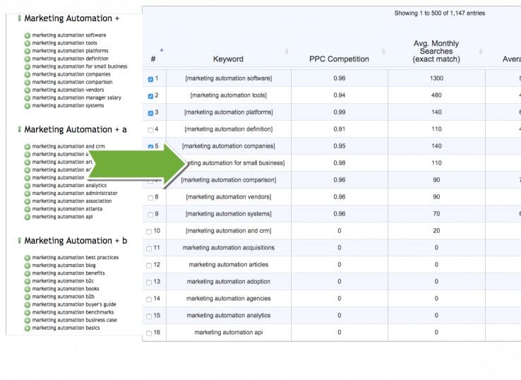 Then, I like to pick the best ones, and bring them into Term Explorer's keyword discovery engine, for further expansion: