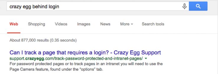 For example, the popular heatmap tool Crazy Egg has a frequently searched term around "Crazy Egg Behind Login". This means users are wondering if they can install Crazy Egg behind a log-in wall.