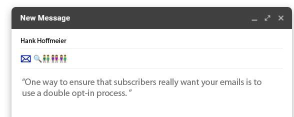 Hank: Marketers should only send emails to people who want to receive emails from them. No exceptions. One way to ensure that subscribers really want your emails is to use a double opt-in process. This allows subscribers to confirm that they want your awesome emails and also helps them find your email in their inbox right away and dig it out from spam, should it land there.