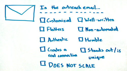 This is the sucky part. These outreach emails do not scale. The ones that work tend not to scale, and it tends to be a link builder's job to scale this process, because you need lots of links, you need it to point to lots of pieces of content, and so you're always looking for scale.