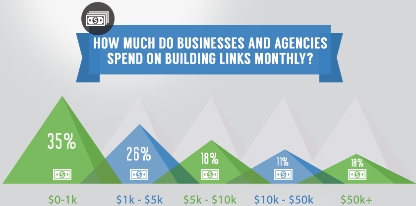 You will note that nearly 39% of those who responded work within an organisation that spends between $5-50k+ a month on linking initiatives. That’s a decent sized budget and while obviously there will be respondents who work at an agency where this is distributed across a number of client projects, it does mean there are a number of businesses out there spending big bucks in an attempt to proactively and passively acquire links. Which as I said, means not only does that demonstrate the continued effectiveness of links as part of SEO but that the budget is justified, i.e. they can see an ROI.