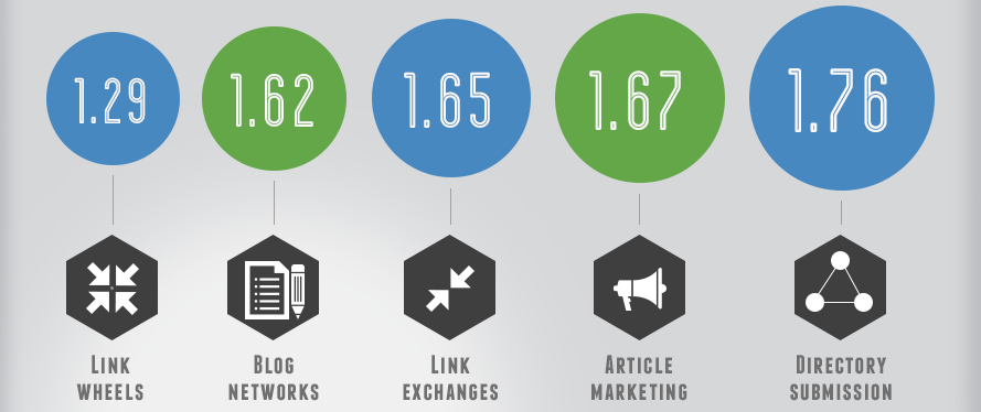My immediate reaction to these results was that there was likely a little bit of confirmation bias going on. You are likely to have seen the fairly recent events involving a UK florist and their insatiable appetite for advertorials (whether it was advertorials that caused the spanking or not, this was inferred as the cause everywhere) as well as Google’s relatively public smashing of some blog networks. It isn’t beyond the realms of possibility to argue that some respondents will have taken on board these big industry events and even if just subconsciously they will be finding evidence in their day to day work that these tactics are indeed dangerous.