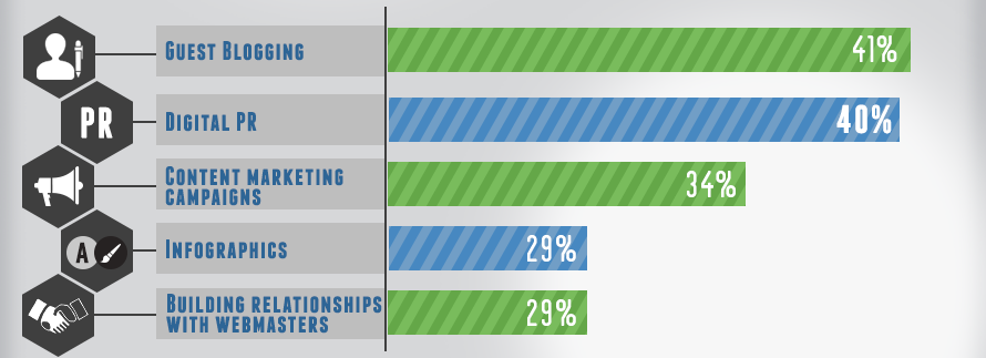 It is clear that the outreach-dependent forms of link building are going to be taking priority for the next 12 months and beyond with respondents planning to focus investment in tactics including guest blogging, digital PR, infographics and building relationships with webmasters.
