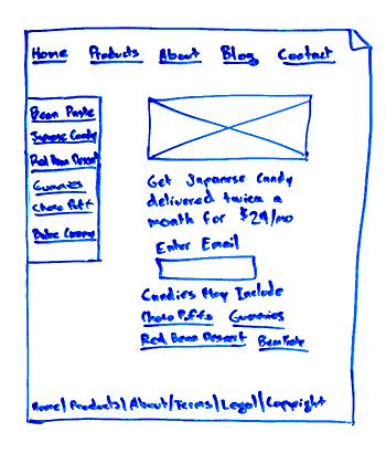 So I'm going to use Candy Japan here. They recently crossed $1 million in sales. Very proud of Candy Japan. They sell these nice boxes of random assortments of Japanese candy that come to your house. Their website is actually remarkably simplistic. They have some footer links. They have some links in the content, but not a whole lot else. But I'm going to imagine them with a few more links in here just for our purposes.