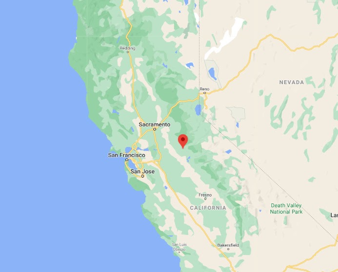 I want to show you the most extreme example of the difference between Maps and the Local Finder that I discovered during my research. First, the marker here locates the town of Angels Camp in the Sierra foothills in east California:
