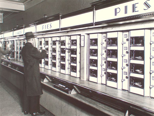 The automat was invented in Germany in the late 19th century and took off in the US in the decades following, with industry leader Horn & Hardart’s last New York location only closing in 1991. These famous kiosks fed thousands of Americans on a daily basis with on-demand servings of macaroni, fish cakes, baked beans, and chicory coffee. The demise of the automat is largely blamed on the rise of the fast food industry, with Burger Kings even opening doors at former automat locations.