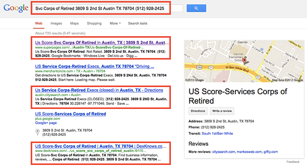 3) Search Google.com for your incorrect NAP.