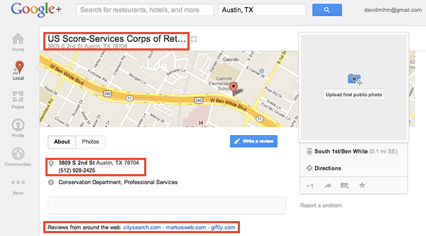SCORE’s volunteer webmaster only increased her frustration level by attempting to edit the group's Google Plus Local page over and over again, with nothing to show for it. Sadly, I suspect many business owners (and marketing agencies) go through the same process, with equally unsatisfying results. I hope that this guide yields more success and helps explain why the process must be more comprehensive than just a quick edit at Google.