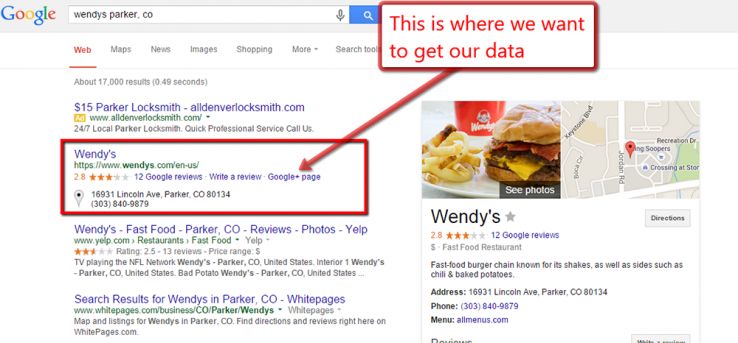 For example if I was searching for a Wendy's in Parker, Colorado, I could simply search this: "Wendy's Parker, CO" and it will pull up the location(s).
