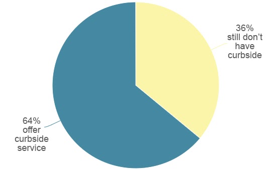 For brands that are still struggling to develop a workable delivery program, curbside pickup has been a welcome option. 64% of the stores in my study are offering curbside service now — a number just slightly higher than the home delivery figure. I saw that in multiple cases, brands that weren’t yet set up to do delivery were at least able to create this fulfillment alternative, but we’d need to see this figure at 100% to ensure no one has to walk into a grocery store and risk infection.
