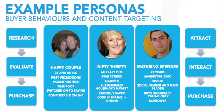 To do that, let's walk through an example for our Happy Couple persona (the first from the above graphic), and see how things plays out for this fictional banking brand.