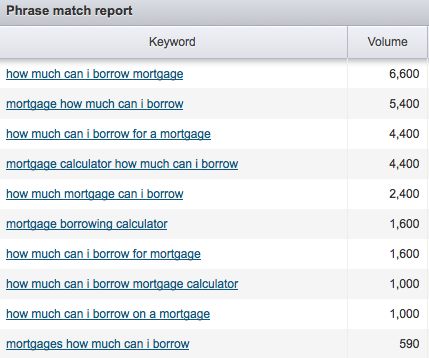 A great example for this would be "how to prequalify yourself for a mortgage," a phrase which would be very hard to surface using Google Autocomplete tools alone.