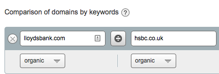 It allows you to compare two domains and visualize the overlap they have from a keyword ranking perspective. For this example, we will choose to compare two UK banks – Lloyds and HSBC.
