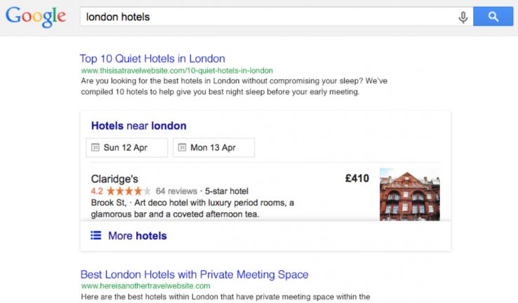 Instead of the usual "best hotels in London" result we get something much more personalised and, critically, something more useful.