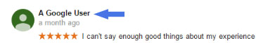 A: As nearly as I can pinpoint it, Google began discounting reviews left by “A Google User” from total review counts around May 23, 2018. For a brief period, these anonymous reviews were still visible, but were then removed from display. I haven’t seen any official announcement about this, to date, and it remains unclear as to whether all reviews designated as being from “A Google User” have been removed, or whether some still remain. I haven’t been able to discover a single one since the update.