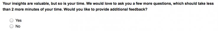 - Understanding that everyone's time is limited, ask the most essential survey question first and then give your customer the chance to expound if he wants to. Like Sears does at the bottom of their two-question satisfaction survey: