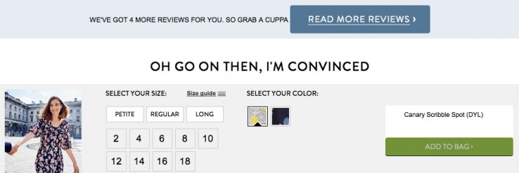 - Or, like clothing retailer Boden, put an order widget at the bottom of all those reviews so it's super easy to order the item after doing your due diligence: