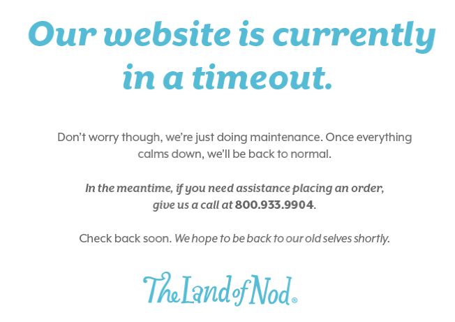 - The way The Land of Nod positions a website error is both amusing and perfectly tailored to their audience: