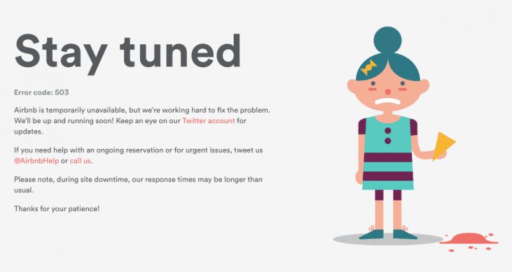 - The image on AirBNB's 503 error page captures that feeling we have when something gets between us and that sweet treat (or vacation reservation) we've been dreaming about: