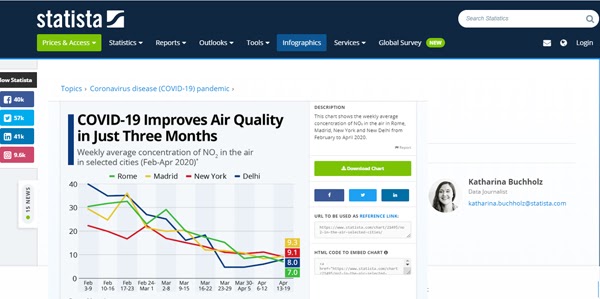 “Could the reduction in air pollution be good news for fighting climate change? (University of Toronto researcher Marc) Cadotte says a small blip like the one we're experiencing will have minimal impact on the long-term challenge of climate change. But if the pandemic continues and emergency measures remain, some countries may end up unintentionally meeting emissions targets set through the Kyoto Protocol and Paris agreement.” — Phys.org: Air quality improves by up to 40% in cities that took action on COVID-19