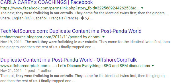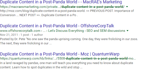 In these rare cases, you can use the "intext:" operator. This forces Google to find the text in the body of the document. Now, all of the top results clearly have an exact match in the content itself: