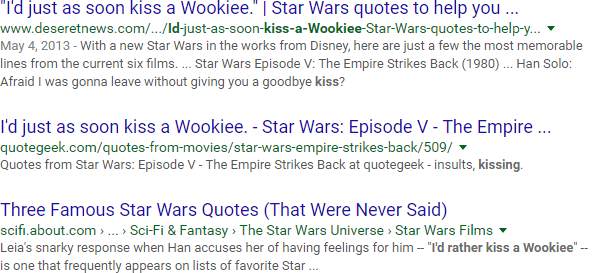 By putting quotation marks around a phrase, you can force an exact-match search. This requires Google to match the specific, full phrase – with all terms and in the order specified: