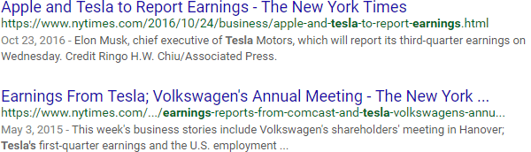 The "link:" operator lets you do competitive link research. For example, the search above looks for all documents relevant to Tesla that have links from The New York Times: