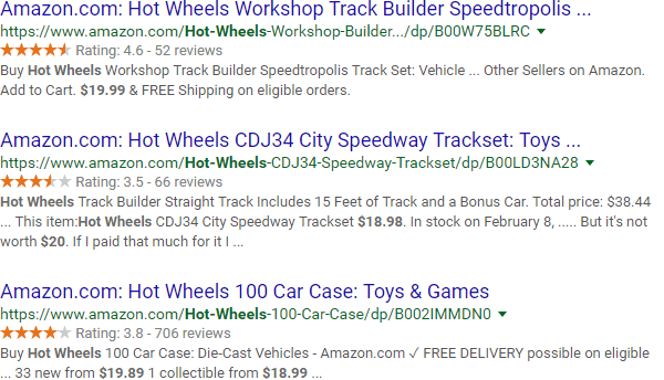 This isn't really a site audit example, but it fits well with our Amazon story. Keep in mind that, while Google will honor the ($) in the results, they could appear anywhere in those results. Many Amazon pages list multiple prices. Still, it can be a useful tool to add to your arsenal.