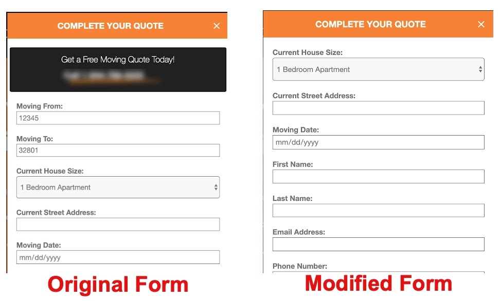 To give you an idea of what testing can do, Portent ran an A/B test for a client to see which of two forms performed better, the original form they had been using or a modified version, which removed non-pertinent information from the top of the form.