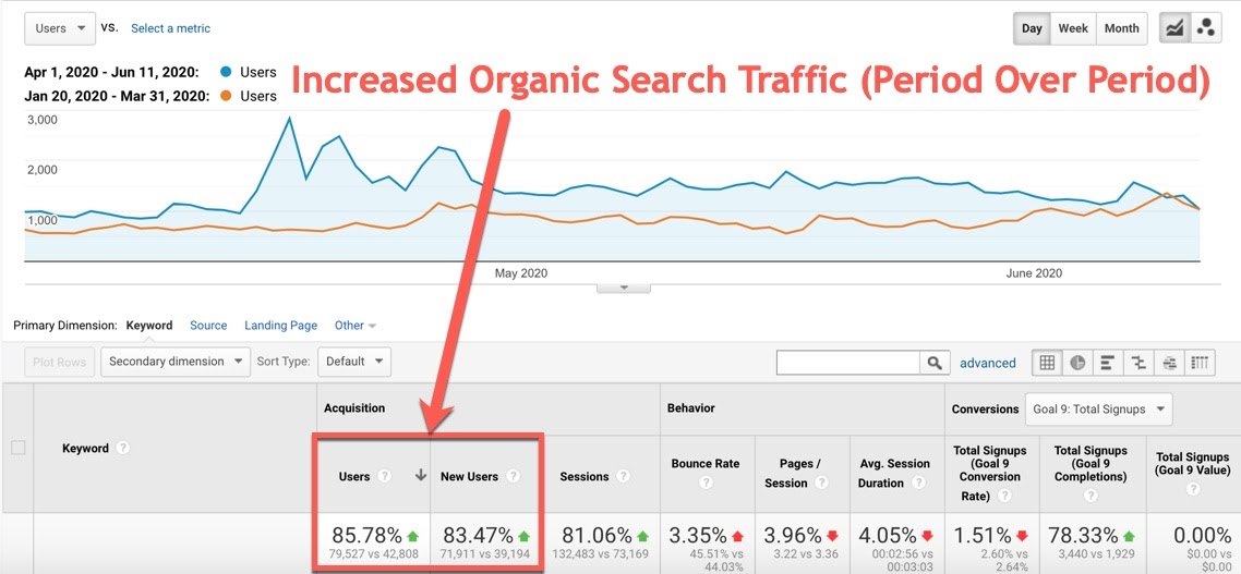 This campaign resulted in the site gaining over 1,200 new links and media coverage on various online outlets, driving nearly 154,000 referrals to the site (a 634% increase in referral traffic period over period). Overall, we saw an 86% increase in organic traffic period over period and there were over 343,000 new sessions on the site, more than 83% of which were new users. We also offered an extended free trial during the campaign, resulting in over 650 conversions.