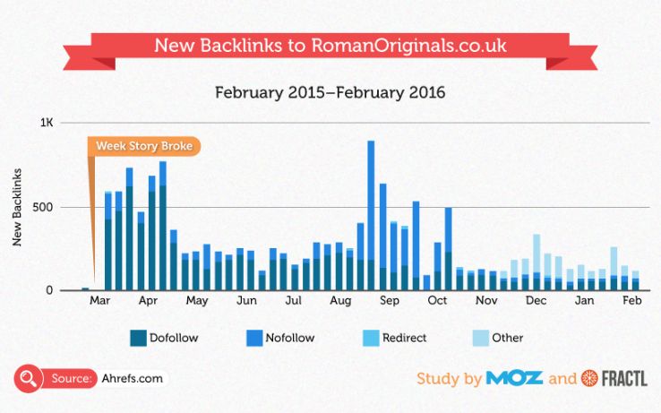 In addition to the initial spikes directly after the story broke, RomanOriginals.co.uk saw a solid lift in backlinks over time, too.
