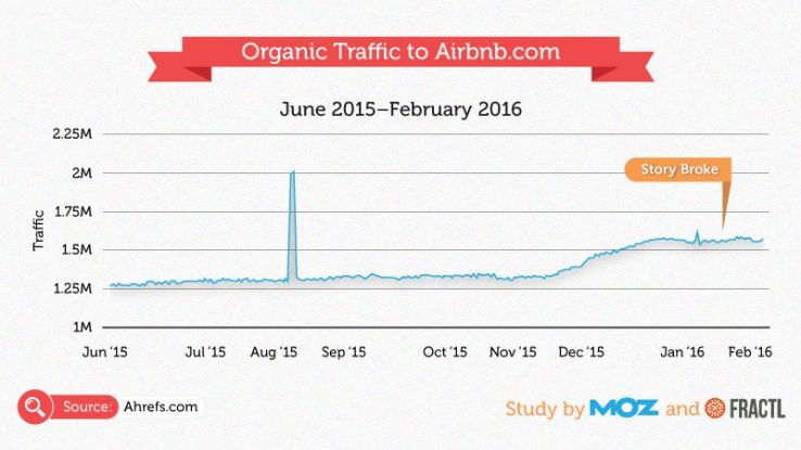 Airbnb’s site only saw a 2% increase in organic traffic, despite an 83% increase in press mentions.