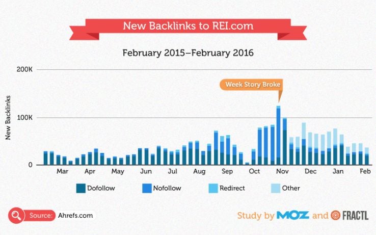 REI.com did see a 51% increase in new backlinks after the story broke. Additionally, the subdomain created as part of the #OptOutside campaign has received nearly 8,000 backlinks since its launch.