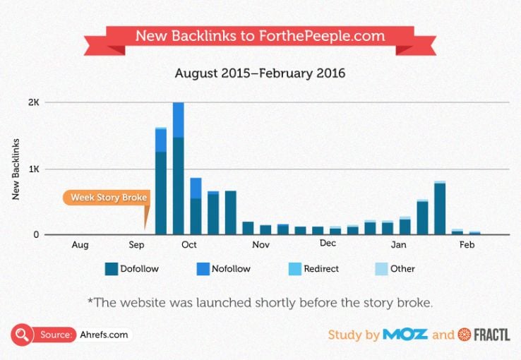 Since the story broke, the site has received around 3,800 backlinks.