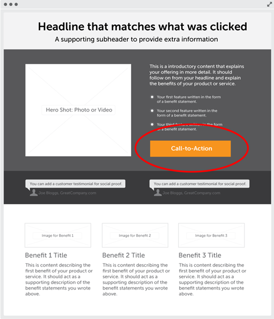 - The copy on your page is essential to the success of your campaigns, and you should focus the majority of your time on crafting a compelling headline and an actionable CTA that inspires a click.