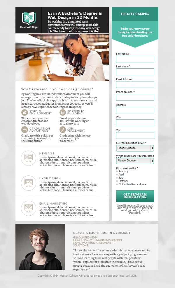 That's a perfect landing experience. Fine, it's a page that I put together but you can see why it would be effective.