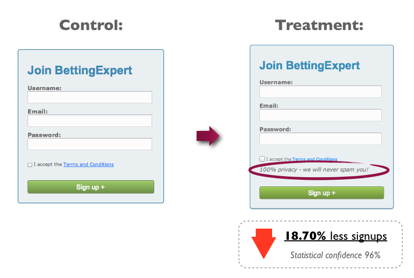 - Remove incongruent words from your page. Particularly when placed close to your CTA. Words like "spam", "gimmicks" can be detrimental to your conversion rates.