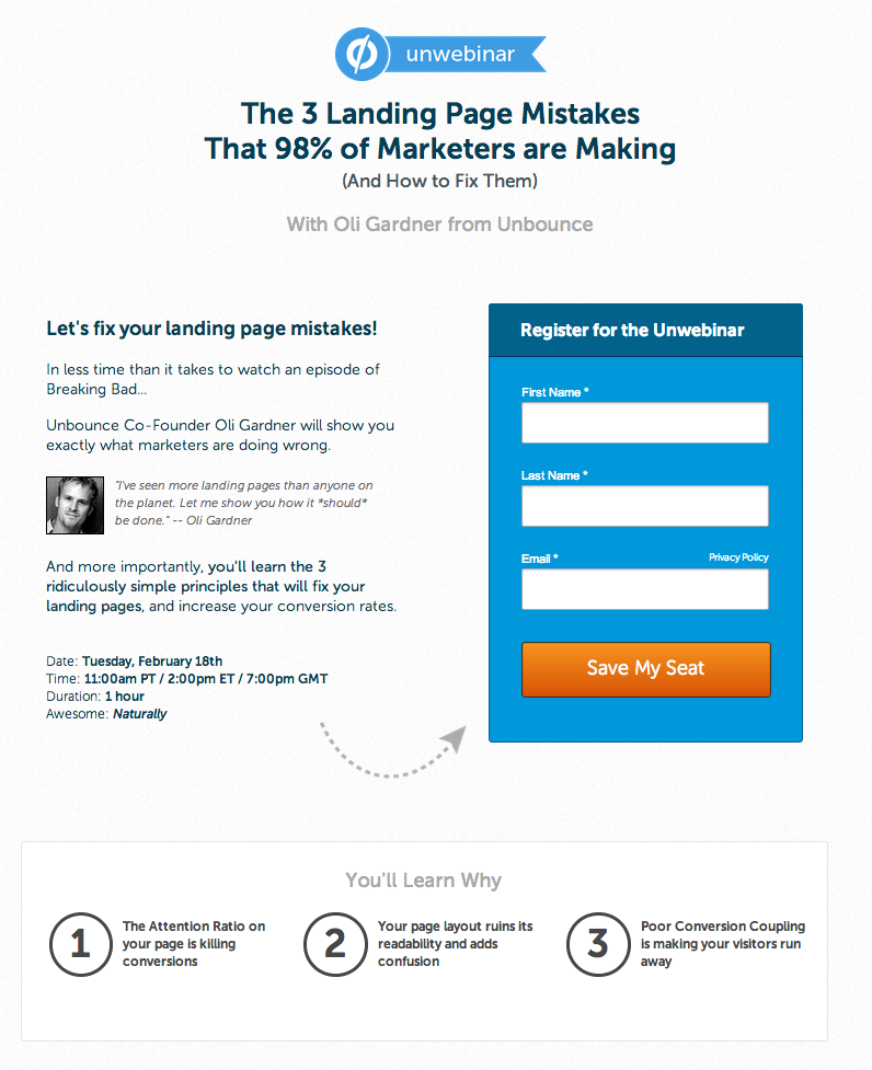 Now that you're a pro landing page optimizer, I'm going to rip into a few bad landing pages so you can see where people are going wrong. To be helpful, I'll also make suggestions for how to make them more effective.