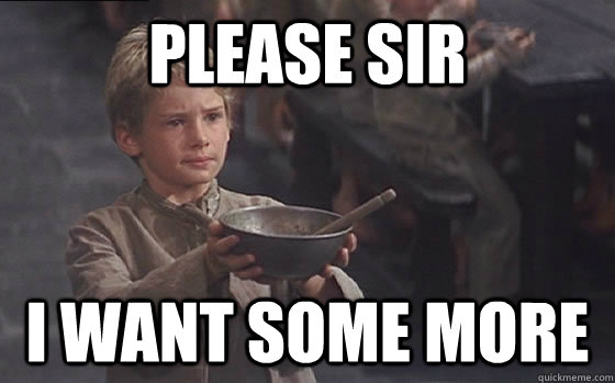 - Is it greedy to want a second helping when you're an orphan? Not if you have my name. (It's Oliver in case you're confused). Always ask for more when it comes to conversion .
