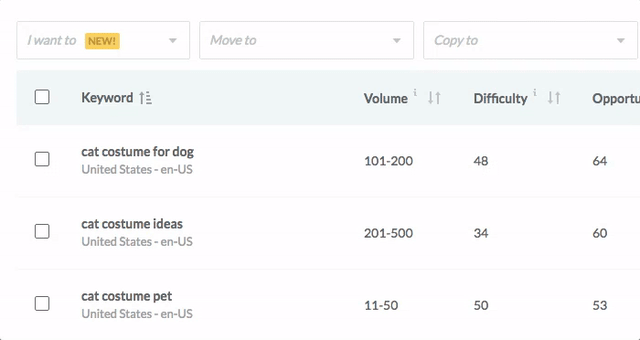 Rather than wading through large volumes of similar keywords and adding each variation to a list, we've added auto-grouping as atop any list of keyword suggestions. This is helpful for discovering and focusing on themes, and adding a whole group of related keywords to your own research lists.