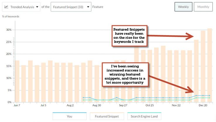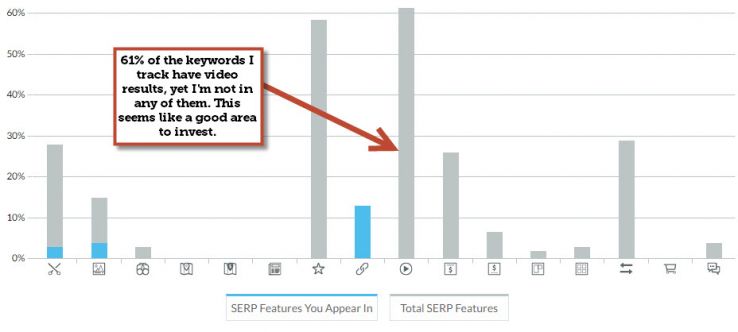 - See how different SERP features have trended for the keywords you track. You may find that a certain type of search feature is trending up and is worth attention.