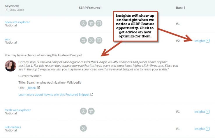 - Discover when we think you have an opportunity to show up in a SERP feature and how best to approach it.