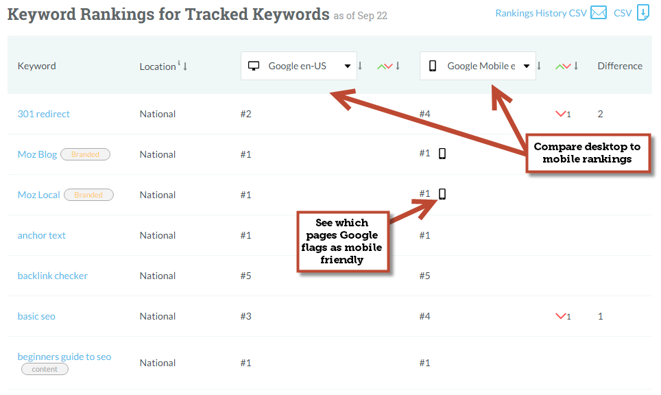 Last year, Google made it no secret they would take mobile seriously. They added mobile friendliness to their ranking factors, so we added it to our rank tracking. You can now track mobile rankings for Google, compare them to desktop rankings, and see which pages Google considers mobile-friendly.