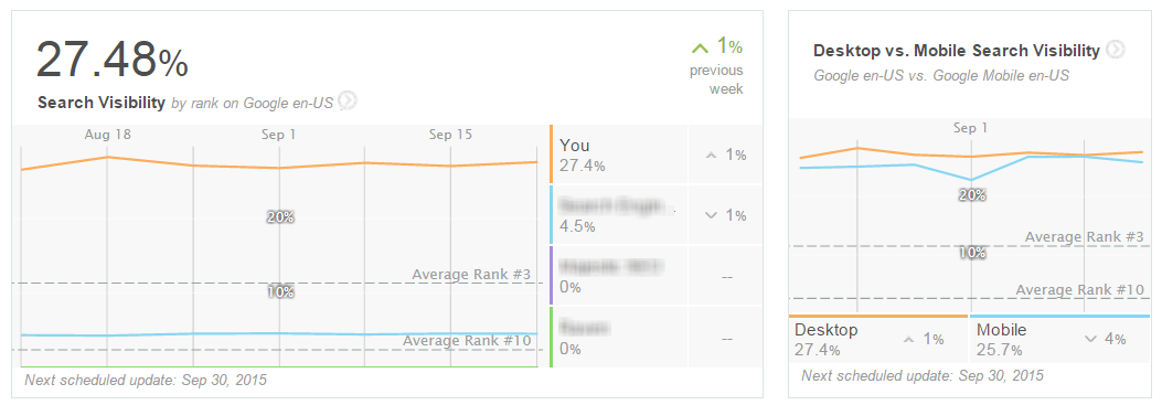 Along with mobile, we added a new way to understand your rankings—our new Search Visibility Score. You can easily see how visible your ranking pages are across all of the keywords you track. Tying this together with mobile rankings lets you see if your site’s mobile device compatibility may be affecting how you rank.