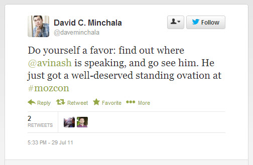 He’s an energetic speaker who delivers eye-opening insights about the power of data that you can put into action immediately. He gave an awesome presentation at MozCon 2011 which inspired a flood of tweets and ended with a standing ovation.