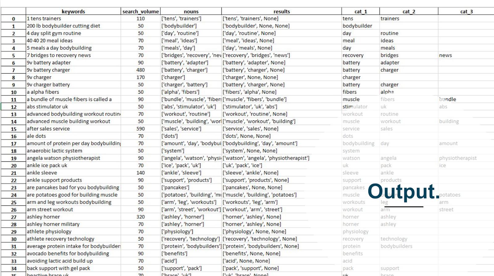 With Miracle’s comprehensive Natural Language Processor with Python, you can analyze up to 10,000 keywords with the click of a button and group them based on category, frequency, and search intent. Don’t worry — even if you aren’t a programmer, Miracle’s scripts are easy enough to plug and play so you can start analyzing immediately.