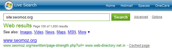 I'm working on a site review for a client, and I was checking to see how well the site was indexed across the major search engines. Normally we do a site: command and skip to the last page of results to get as accurate a count as we can; however, MSN's count is a little puzzling. When I first performed a count, it said the client's site had 180 pages indexed (it's a brand new site). Jumping to the 10th page, however, changed the count to 100, and I couldn't see any results beyond page 10. Furthermore, when I tried to go back to previous pages, the count remained at 100. What happened to 180?