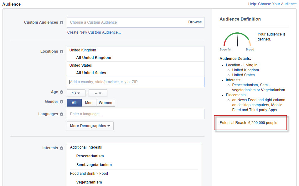 As you can see from the screenshot above, there are over 6 million people interested in the topics within the UK and the US alone. That's a good starting point.